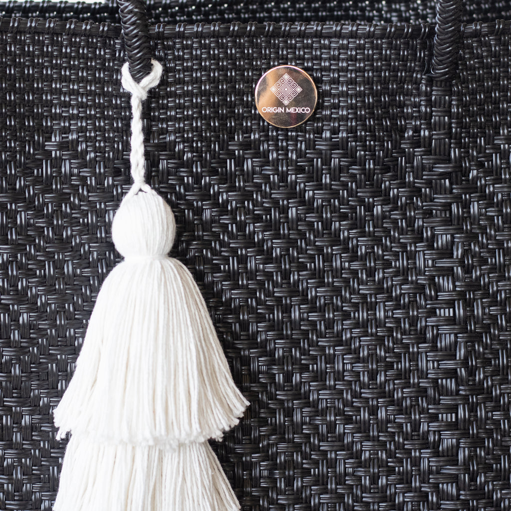 Handwoven Oaxaca Tote Bag - Black with Leather Handles