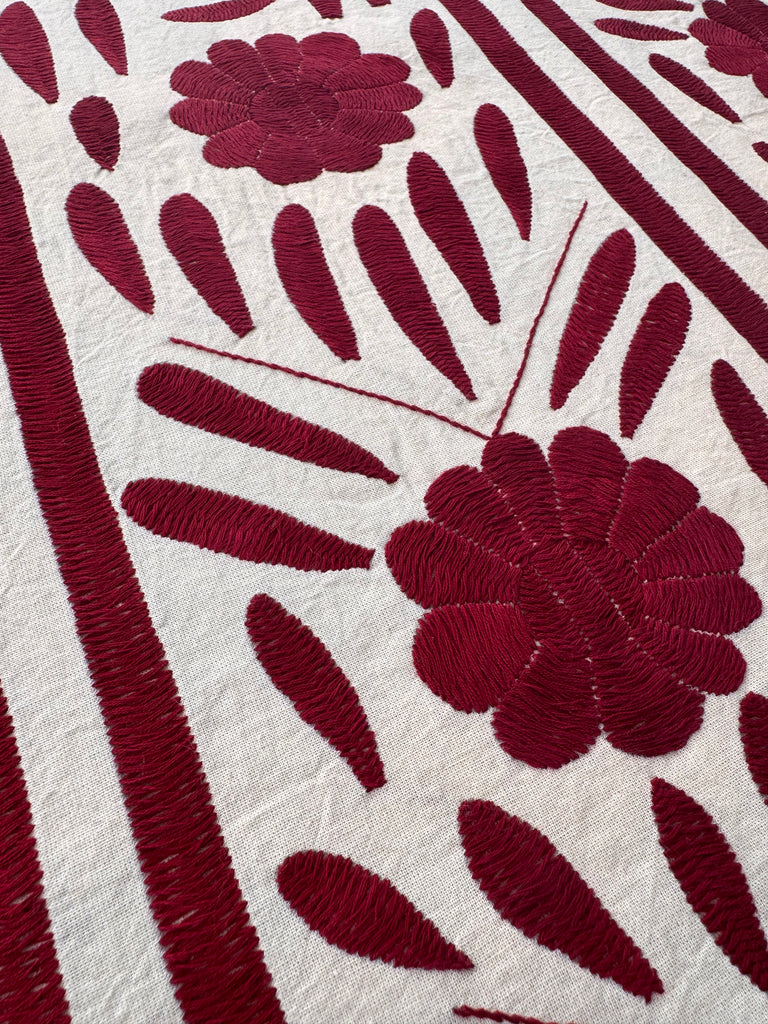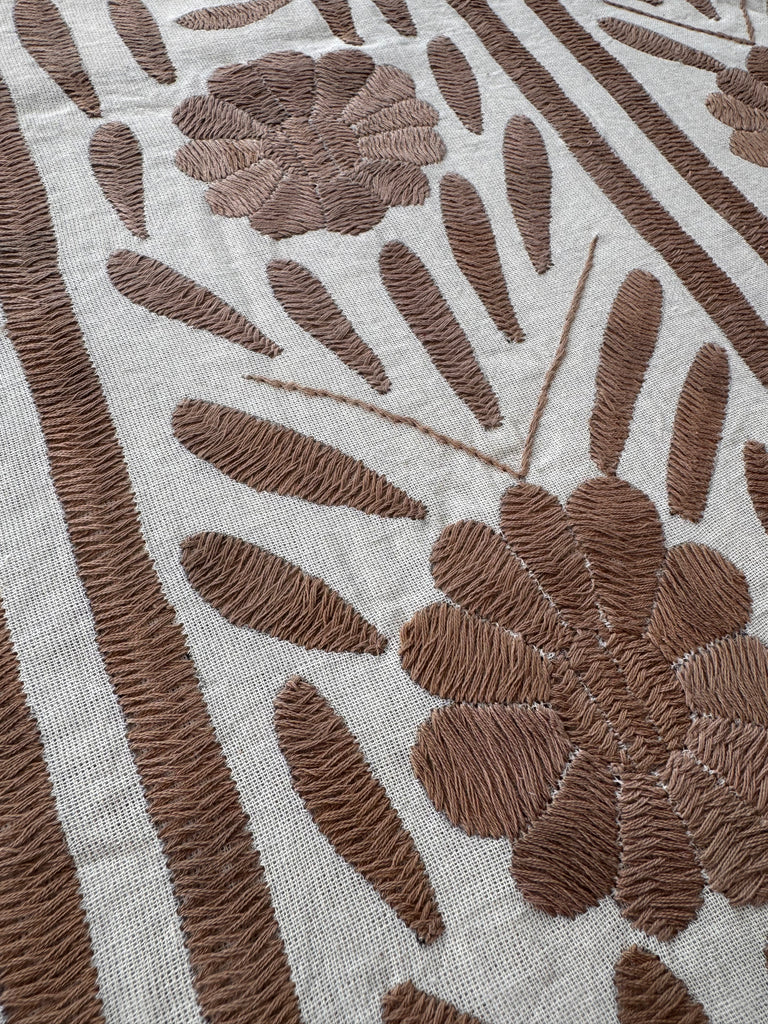 Care Instructions: To preserve the delicate hand embroidery, we recommend dry cleaning.
